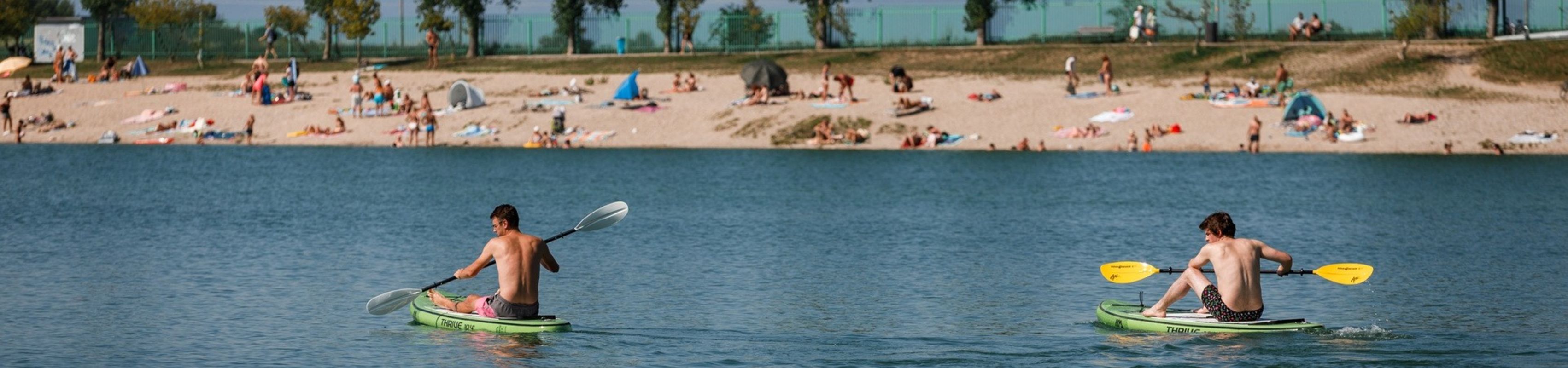 The recreational area attracts visitors with its summer atmosphere and beautiful natural surroundings. The large water surface, covering almost 120 hectares, offers ideal conditions for swimming, water sports, boating, and fishing. Grassy beaches with a gentle entry into the water and an average temperature of 25°C make it perfect for families with children.
